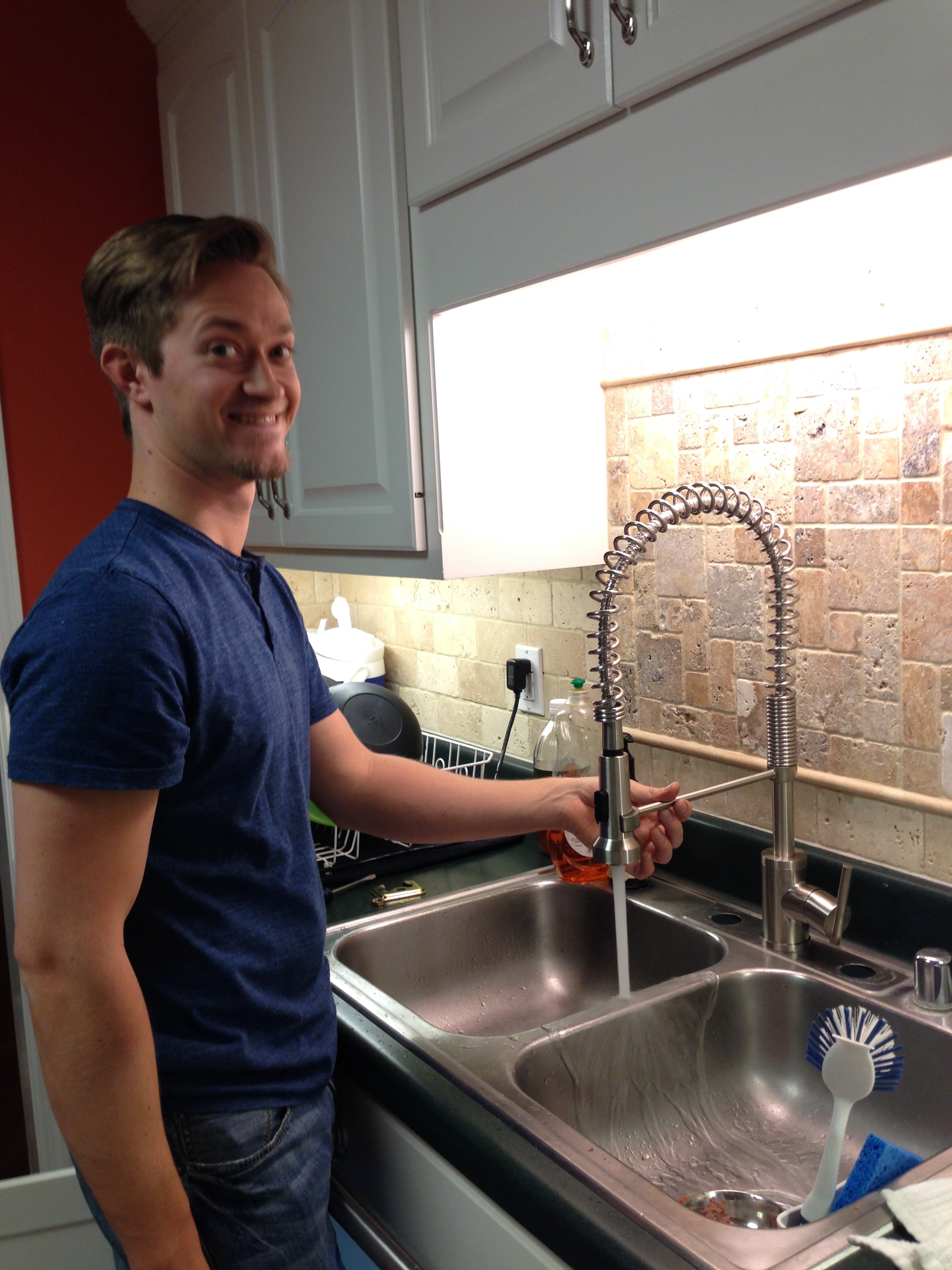 We got a new faucet!! Ours bit the dust and was beyond repair (Rob has actually rebuilt this faucet about 3 times since we moved in, but this time it finally went to faucet Heaven) so we ordered what we wanted and Rob installed it Monday night! I am loving it! What a difference it makes. As someone who feels that they are forever standing in front of the sink washing pots and pans from all the dang cooking we do, this actually makes that process so much easier! The final piece left to complete our “remodeled” kitchen is to replace the sink with a large, deep, single basin sink. This will have to wait a few months. Life is expensive.