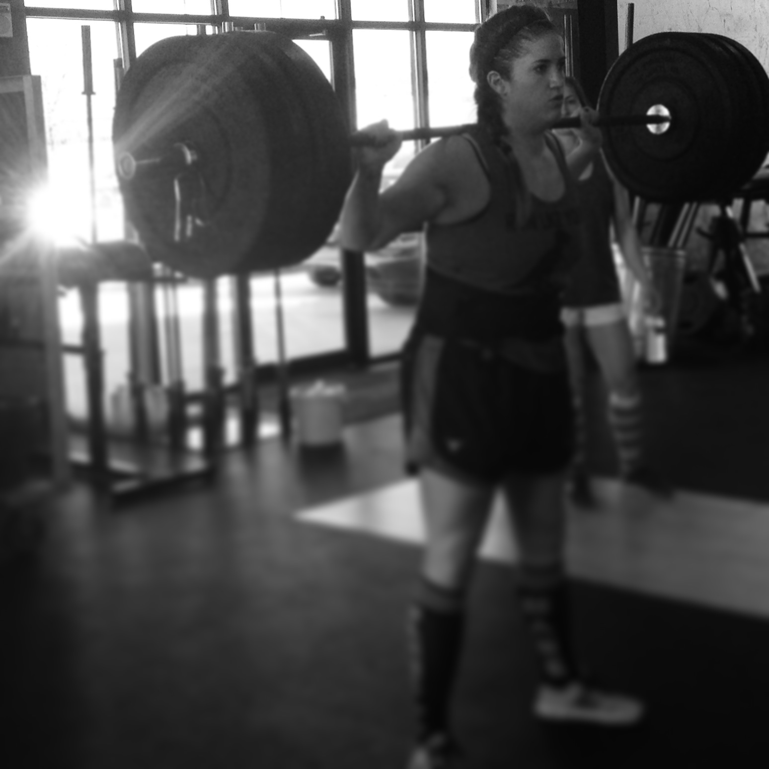 I love the way the bar feels rooted in a front rack position. My fingers bloom open to hold it into my chest and my elbows bellow at the heavens. This is where I am able to puppeteer; I can squat it or take it overhead, each move carrying its own burden on my limbs and my pain receptors. This is where you are most likely to hear me cry out; the guttural howl that escapes from an athlete wielding heavy weight out in front of them is deafening. It’s the announcement of victory, and it’s the final bit of energy that helps you get out of the bottom and stand the weight up.
