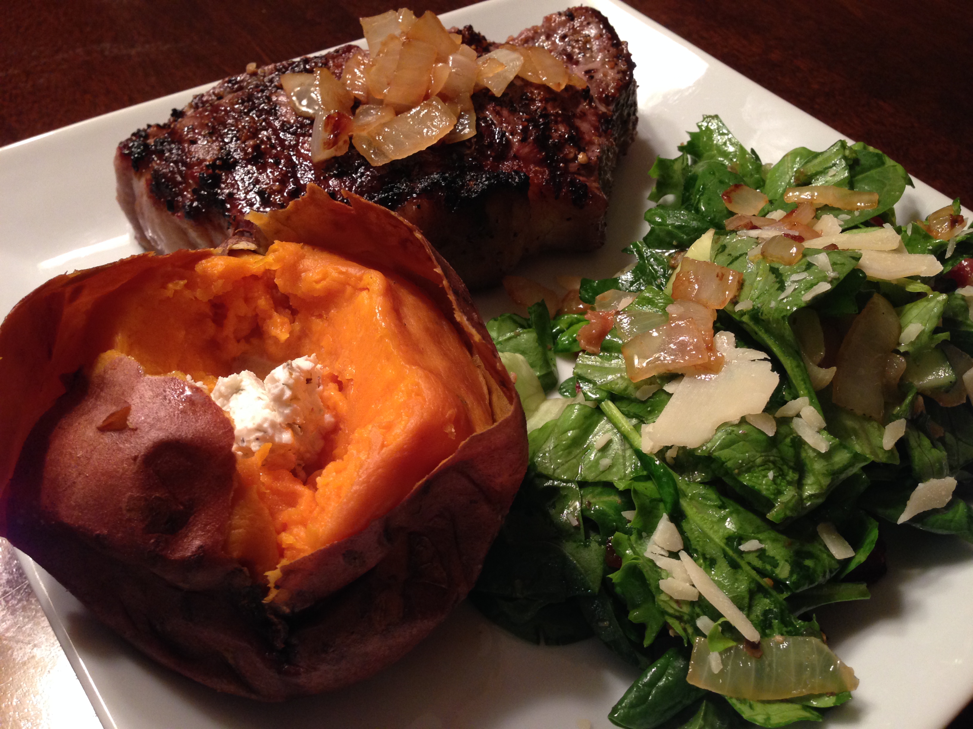 Steak, Sweet Potato and Spinach Salad (PSA: I only ate half the steak). I kept thinking about The Great Outdoors and John Candy eating the Ol’ 96er. That was a hilarious movie. If you haven’t watched the Great Outdoors, make a point to do so this weekend.