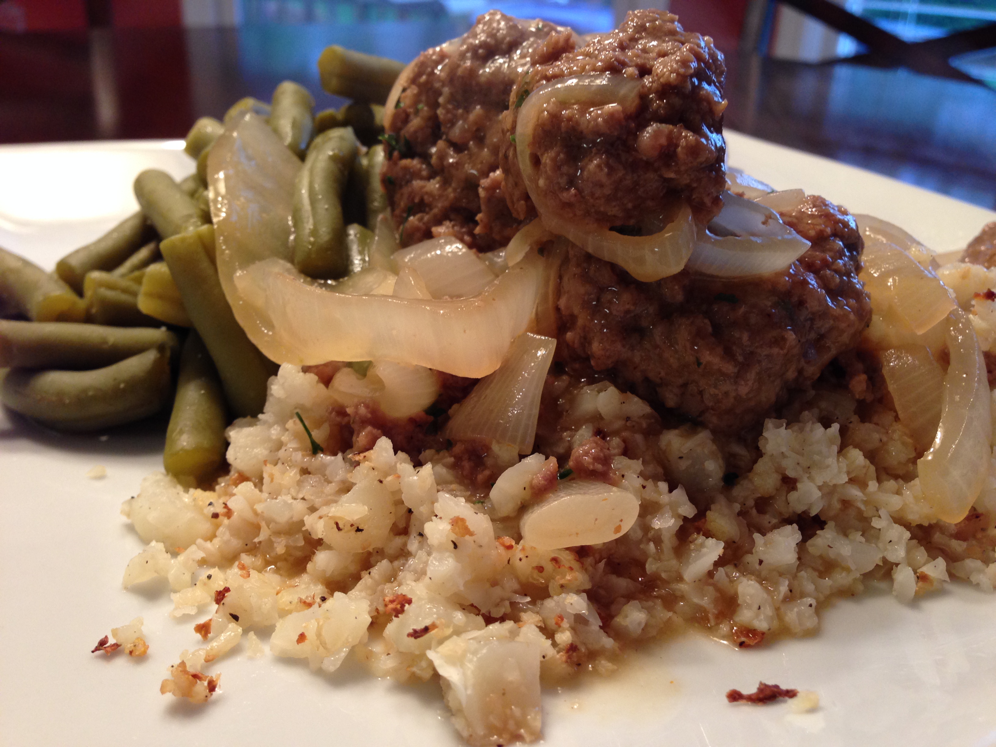 Ultimate Paleo Comfort Food: Salisbury Steak Meatballs with Cauliflower Rice and Green Beans. Made this last night and paired it with a Yuengling and I’m already excited thinking about eating it for lunch. I wish I could drink beer at lunch at work. I think I would be far more awesome to work with if I could. Ordinarily I’m usually just a grouch.