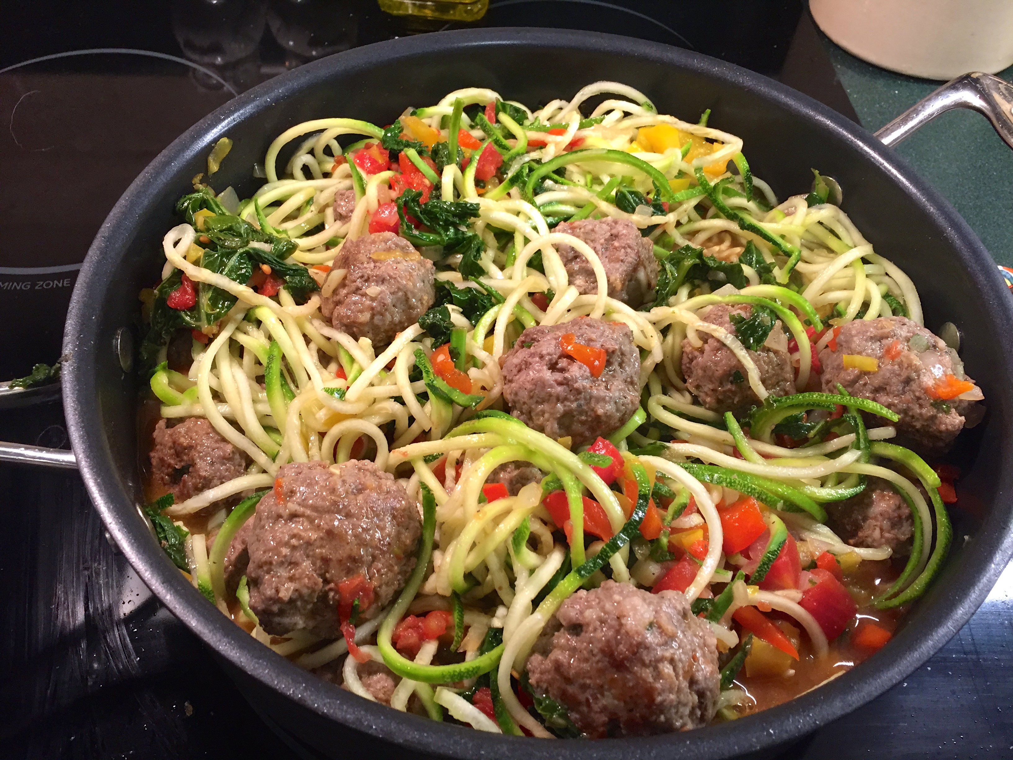 So I guess I will call this “Meatballs and Zucchini Noodles with Veggies”…Pretty clever huh?