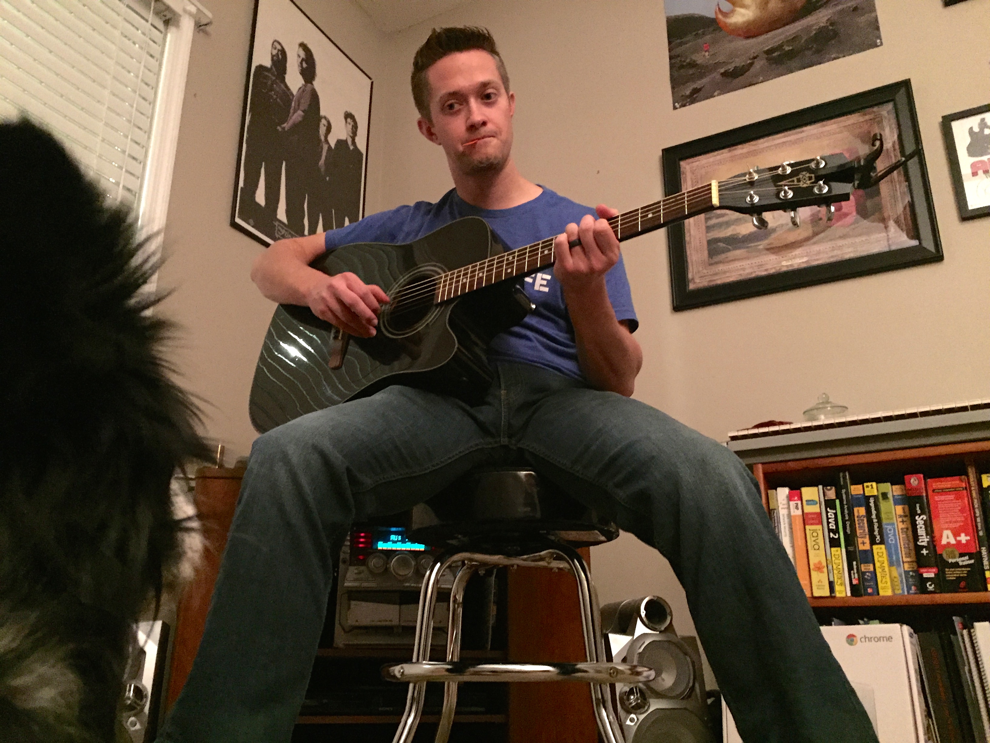 Anyway, I’ll back up. Friday night we came home from work and lounged around, ate some chili, and enjoyed each other’s company. Rob played guitar for us (me and the animals) for a long time and it was nice to just lay around and listen to some live music. Then I picked up the guitar and he tried to help me knock the dust off some chords. It was terribly embarrassing. I’ll leave the guitar playing to him.