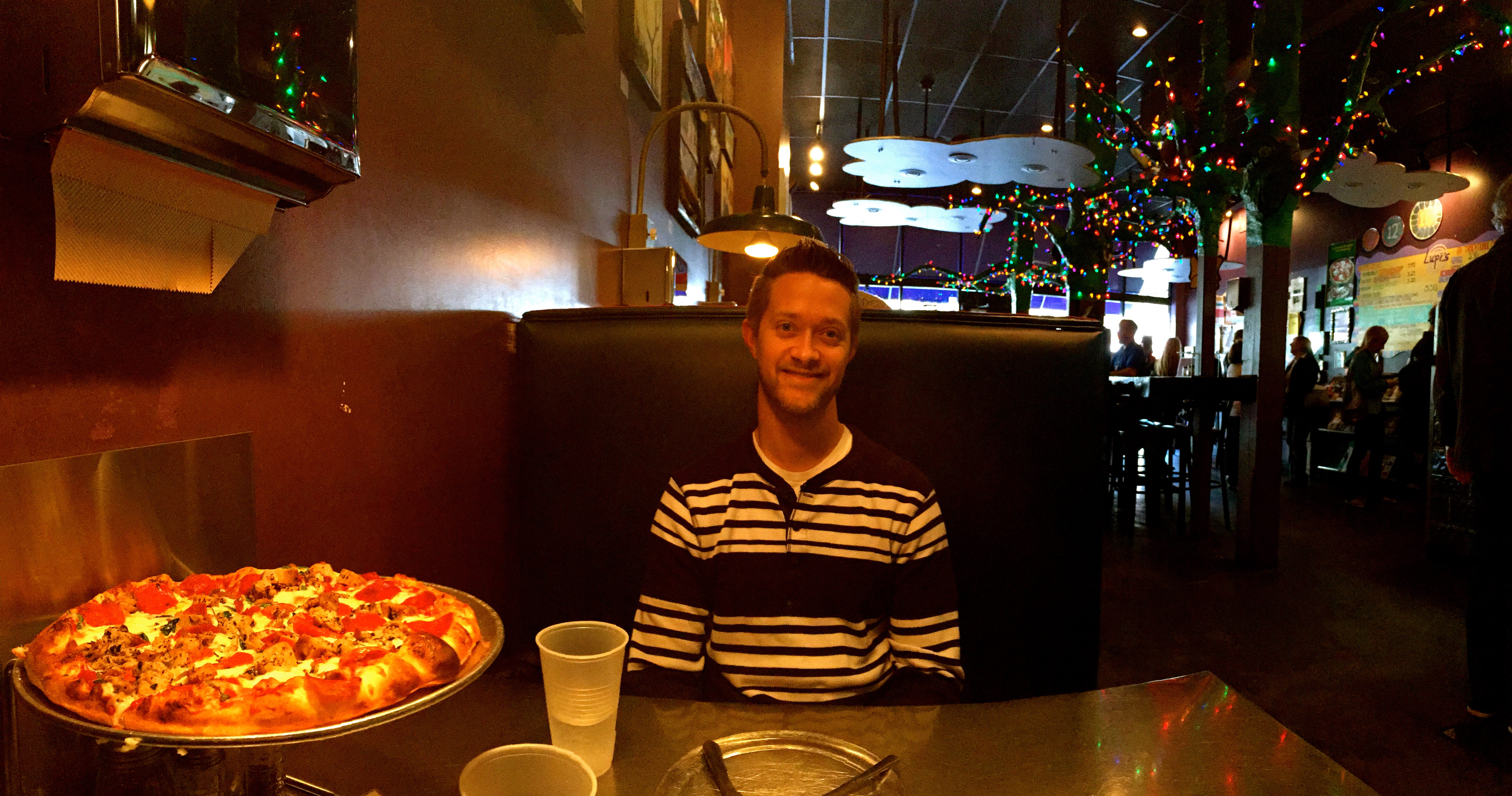 Rob and I stopped for lunch at a place called Lupi’s Pizza PiesΒ that was right downtown. It was delicious! Here is a decent pano to give you an idea of the inside of the place. Rob ate the entire pizza. (just kidding (but almost)).