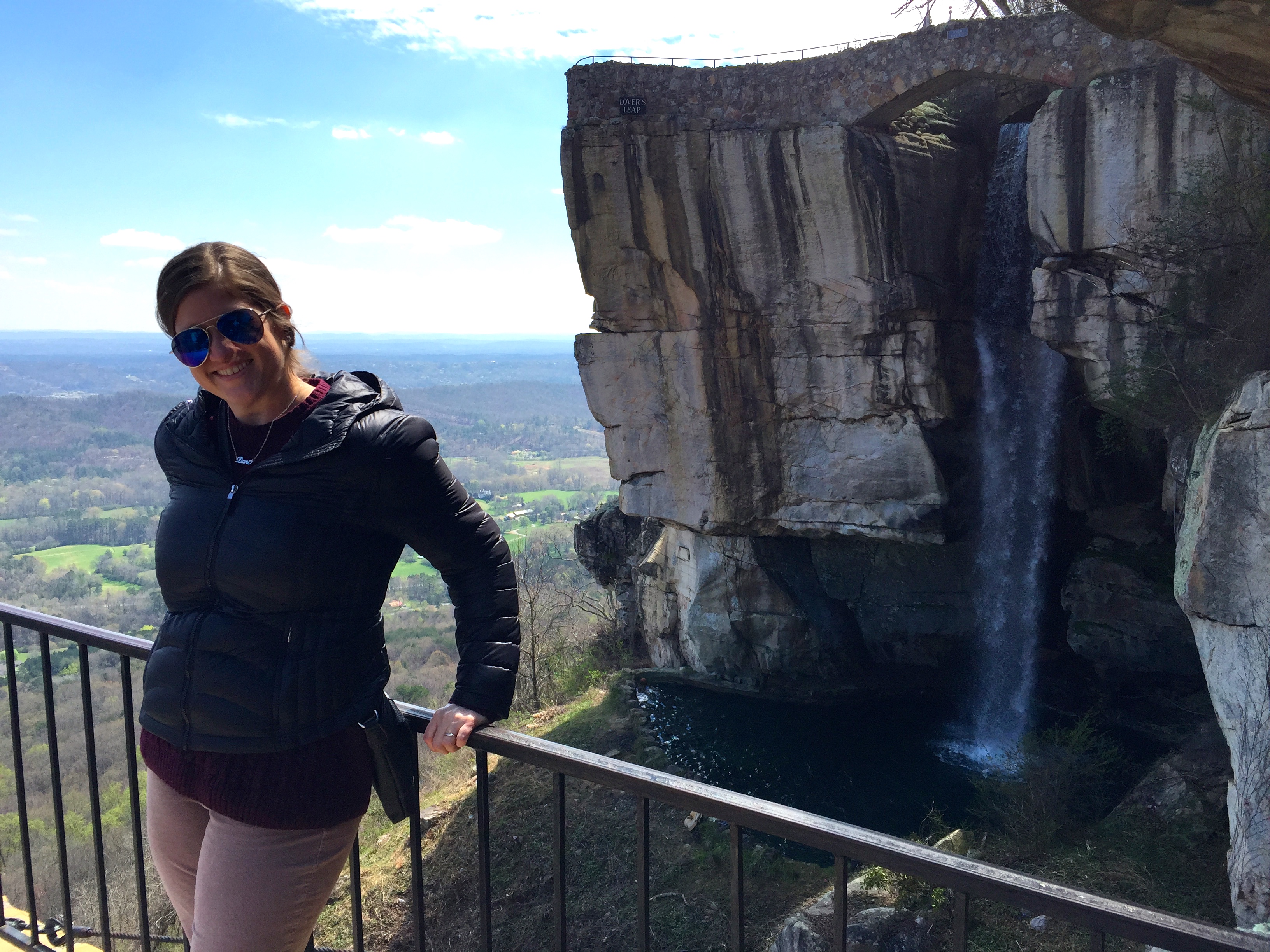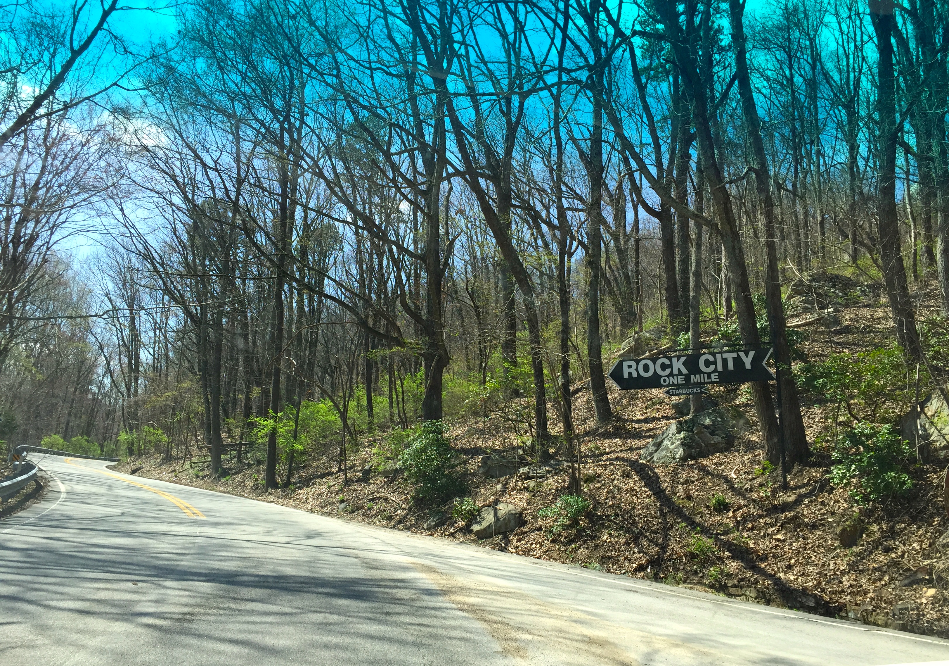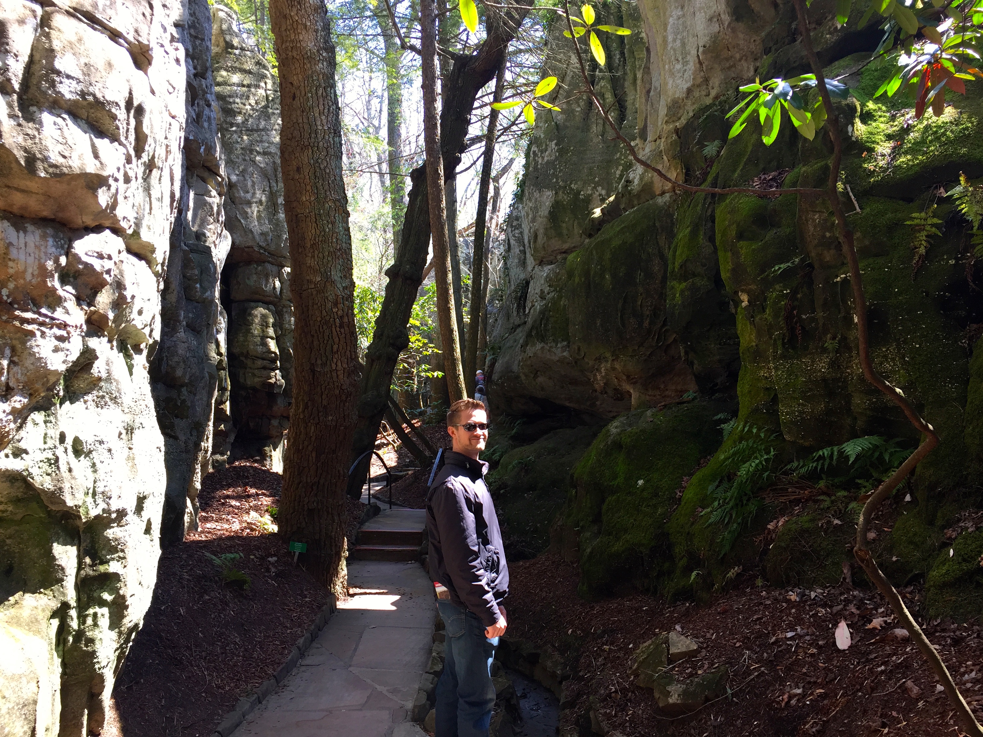 Once we were caffeinated properly, we hit the road to Rock City to do some sightseeing. Rock City is only about ten minutes outside of Chattanooga in a town called Lookout Mountain, GA. The day was chilly and windy, but really bright and sunny so it was the perfect chance to do something outside. Below are just a series of photos that capture our time in the park. It was 20 dollars each to get in, but we spent an hour walking through and it’s really quite amazing. Plus, the view from the top is breathtaking. There were tons of folks there walking through it, but you can time it right where you aren’t directly behind or in front of someone else. The trail takes you through a lot of amazing natural spaces, and in some areas, the rocks are so close you have to turn sideways to pass through.