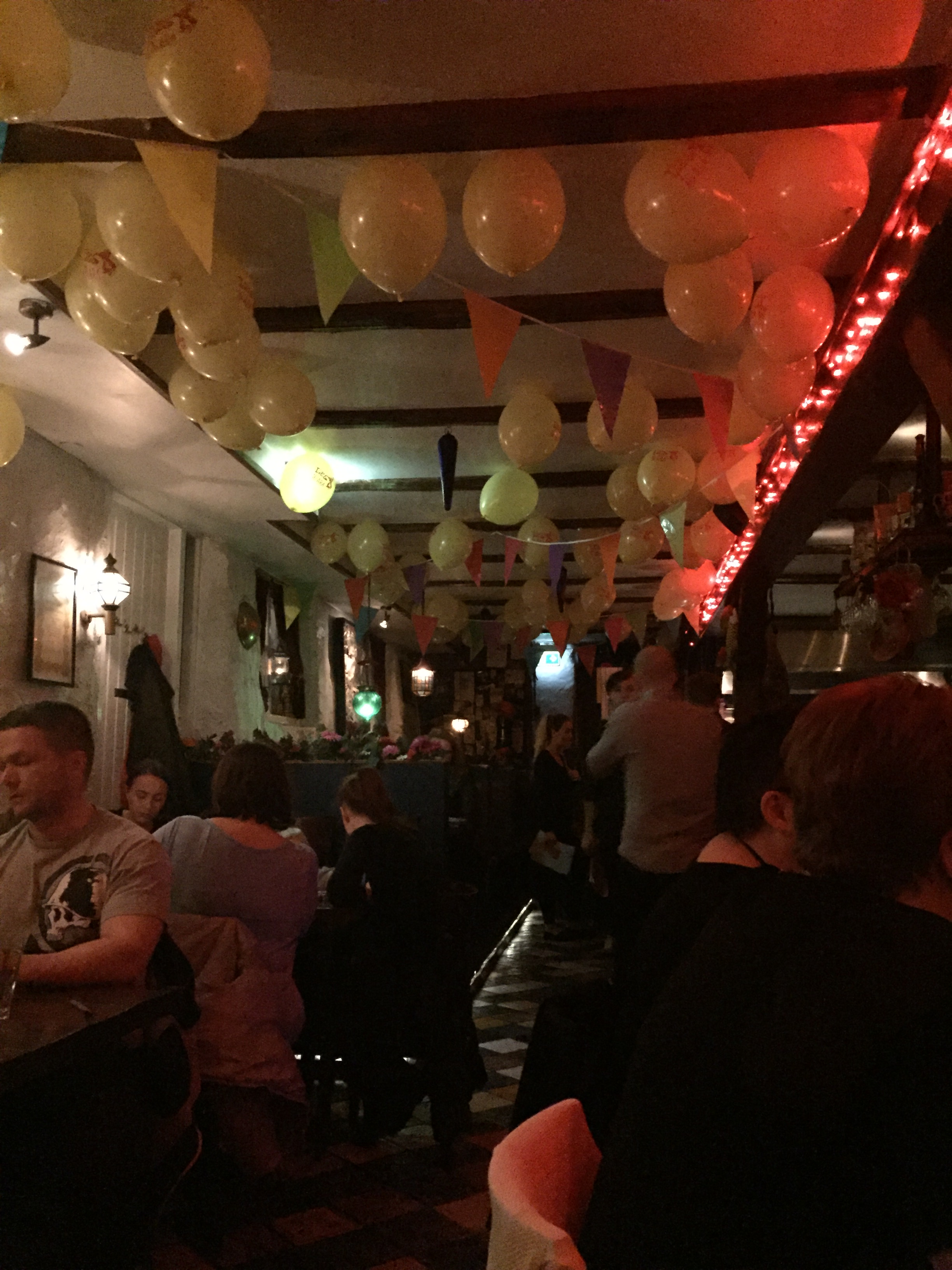 I am so glad this place was recommended because it was really fun experience! It was located in the town center and it took us probably 6 minutes to walk there. They were in fact throwing a huge party for themselves, and the places was crowded with 20-30 something locals. I really wish I could have taken a lot of pictures, but the lighting was very dim. Picture Red Bar on the Gulf Coast, only much more European.