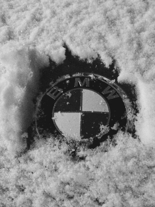 The BMW emblem on the hood was in my stocking my first Christmas with the car. Rob wanted to replace it for me because the other one was chipped, since Blackie was already very “well loved” when she came to be mine. It snowed that year!