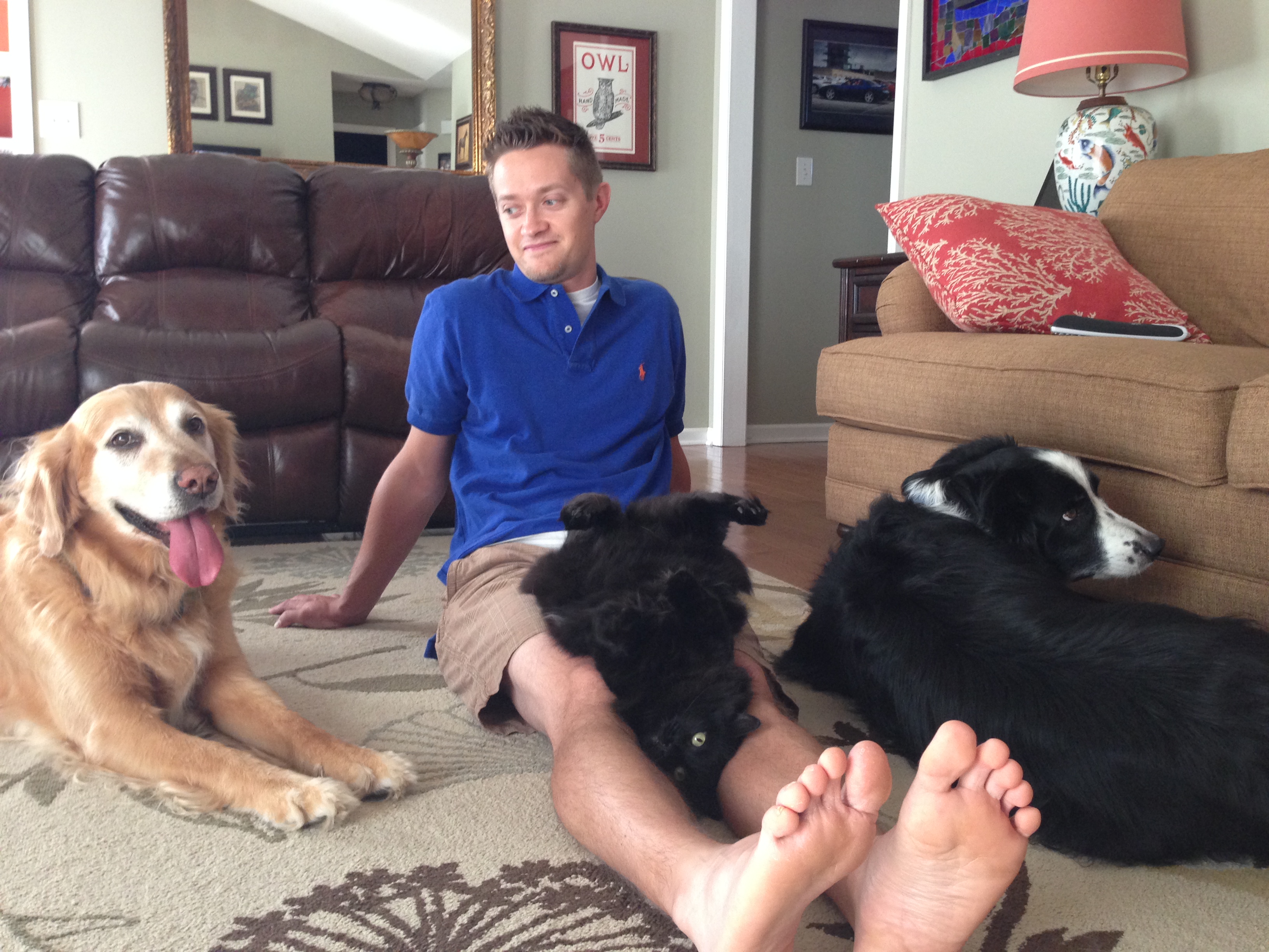 About 7 years ago, they accepted a third dude into their wolf pack, and I would be remiss if I didn’t mention how easily Sneak (the cat) slipped into their squad. Sam and Sneak quickly assembled “Team Hungry” and their passion for eating meals together was only outmatched by their passion for napping together.