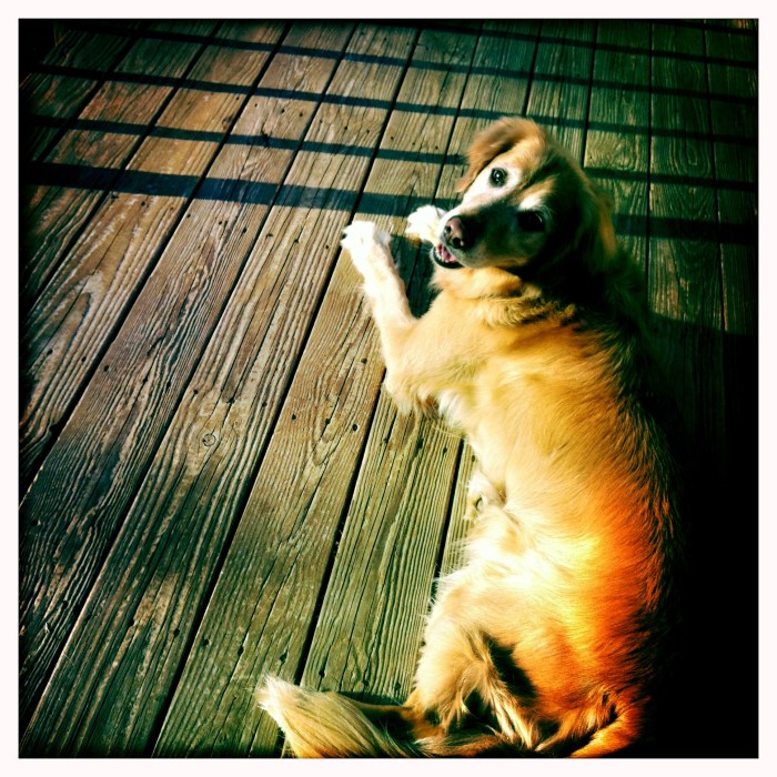 I remember vividly the day I met you. It was pouring down rain one afternoon in Auburn, AL and I was curious about an email I got advertising a 2 year old male Golden Retriever who had been relinquished at a nearby vet. The rain should have kept me in, as it was the kind of rain that only the most pressing of errands could rouse you from the house. The reality of a three bedroom top floor apartment that I shared with two other girls should have kept me in. The fact that I worked a part time job making 5.45 an hour should have kept me in. But I thought to myself “I’ll just go and see”…so I got in my car and drove into your life and we have been together ever since; that was February 2006.