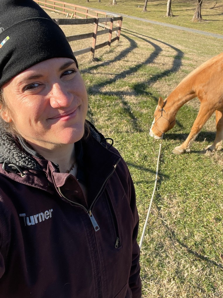 It’s been about three weeks of having Evie, and already I’ve had to learn to just go with the flow. Initially I had hoped to dive right into conditioning and work under saddle, knowing she and I both would be learning together. But she was really underweight and had very little muscle mass due to foaling a baby, and I realized she needed down time to simply eat, get healthy, and adjust to being a horse in this new environment. My hope now is that as we move out of this brutal winter and into Spring, when the days start to lengthen and warm up, we can gradually begin doing some work together. I hope that with the time I’m able to be at the farm, she will begin to relax and trust me, and welcome my approach and enjoy my company. But, until then, we still very much enjoy hers.