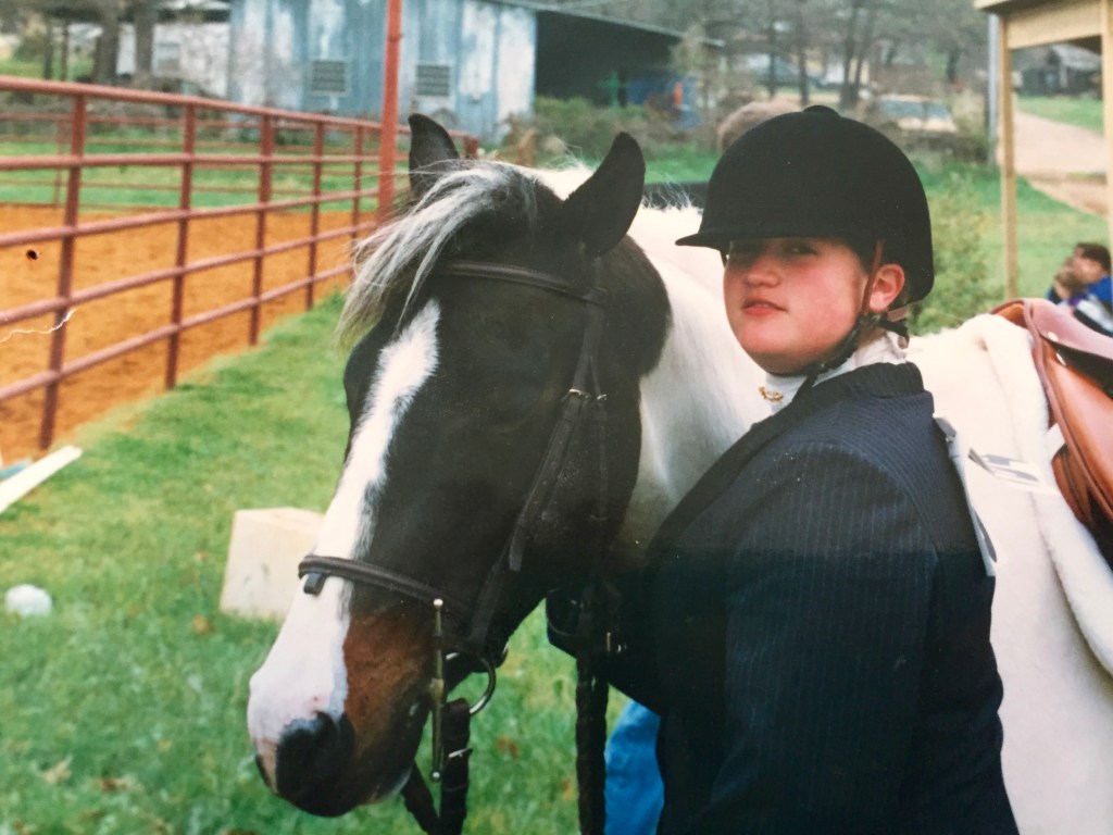 I took a few lessons when I was in elementary school, but I think money was tight and I was spending most of my time in dance classes, and it wasn’t until I was in middle school that I made my way back to taking riding lessons at a nice show barn not far from our house called Fieldstone. I was able to mostly have my pick of their lesson horses, and even became good enough to ride the most ornery of barn ponies; but oh how I wished for one to myself. I studied under a really strict, and even sometimes unkind trainer, who took no nonsense or complaints. His teaching style was intense, and while there were plenty of times I didn’t have much fun during a lesson, I quickly advanced in skillset. I developed a really solid seat, good instincts, soft hands, and a lot of bravery. I learned how to care well for horses, and how to not quit when things got maddeningly hard. I learned how to fall off without landing on my head, and I developed calluses between my pinky and ring fingers, and scars on my inner shin from friction sores from cantering in a two point seat for so long and training my lower leg to stay still. There were many days the stirrup leathers would rub so much through my breeches that my skin would bleed right through (years later i discovered how glorious half chaps were!) I have very few photos from this time in my life. We didn’t have cell phones or cameras, but I have vivid memories of how much I loved being there, the horses names I rode, and that militant trainer that laid the foundation for me to be build from.